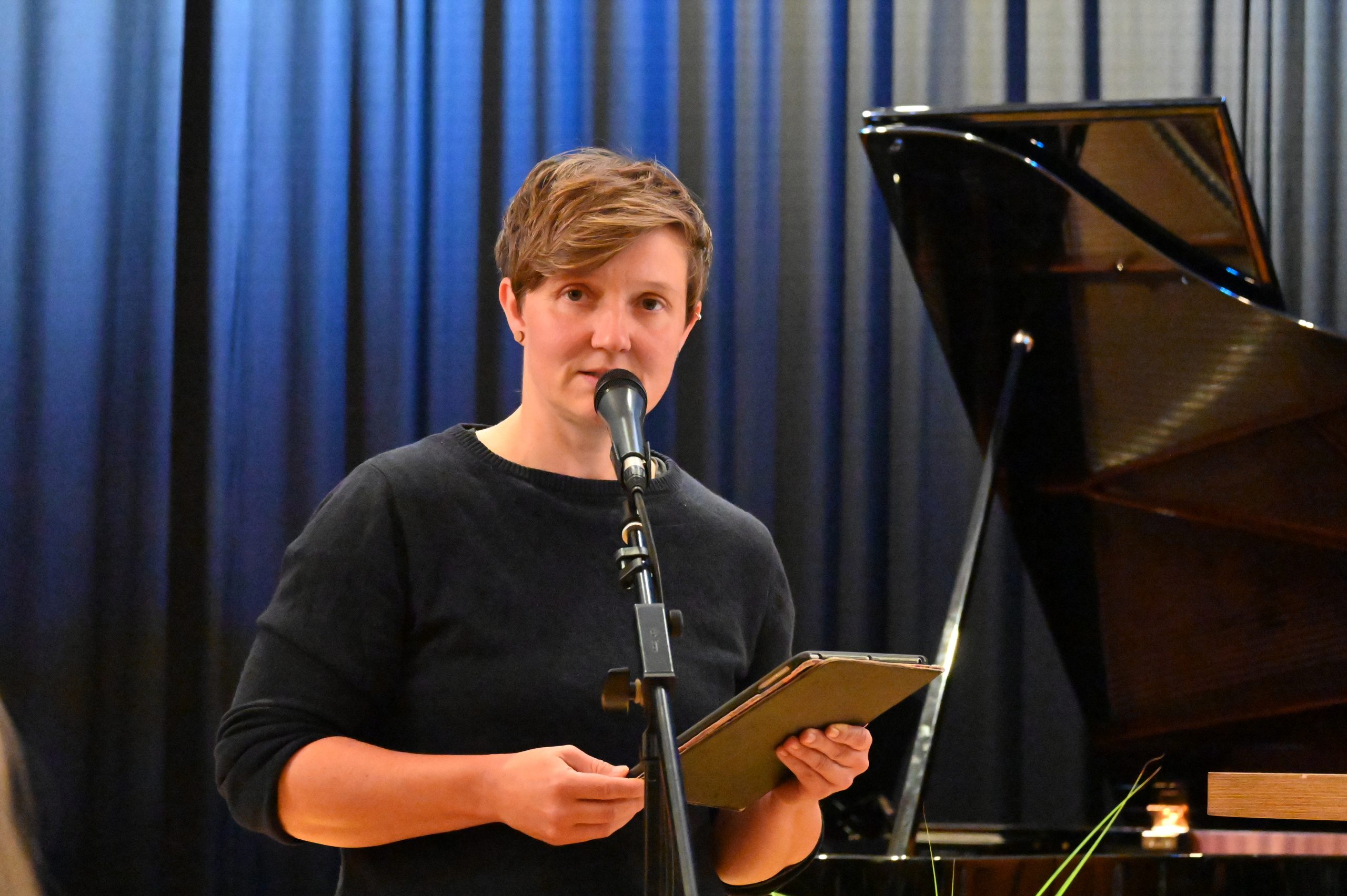 Mit heiteren und nachdenklichen Texten suchten Véronique Dehimi, Simon Gerhol, Ruth Gisela Gross und Karolina De Valerio nach dem Verbindenden und Trennenden von eigener und fremder Sprache, nach einem gemeinsamen Verstehen sowie nach der Überwindung sprachlicher Grenzen.